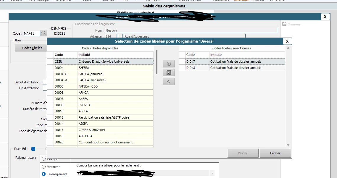 Je sollicite votre aide car après avoir suivi les instructions de paramétrage de la cotisation ADP avec la DI049 et créé l’organisme DIVERS avec le même numéro d’affiliation que mon organisme Frais de Santé en RPS, dans la DSN, la cotisation apparaît dans les cotisations du mois mais aussi sur la ligne AKTO.