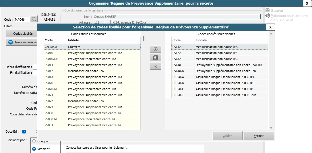 Qu’il ne détecte pas la PS112 et la PS140 alors qu’on les voit, c’est étonnant. Vous avez bien deux organismes de créés, un en Divers et un en Régime de prévoyance supplémentaire ?