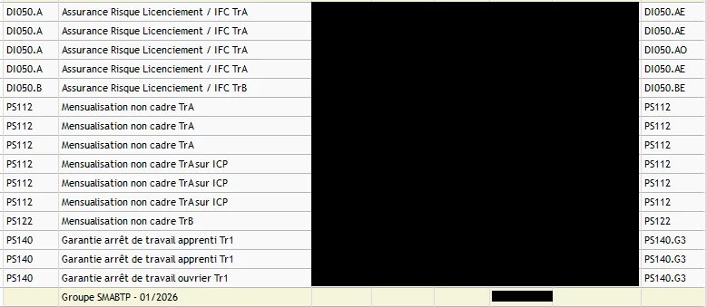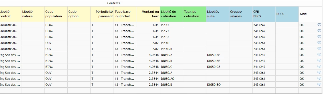 Les codes dans la colonne Libellés suite doivent être dans Taux de cotisation. Sur la GAT ouvrier, en taux de cotisation, vous pouvez mettre PS140.G3.