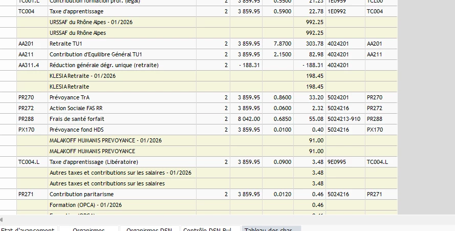 Comme vous pouvez le voir sur votre tableau des charges, vous avez des cotisations imputées à Malakoff Humanis non paramétrées dans votre fiche de paramétrage : l’action sociale et la prévoyance fond HDS.