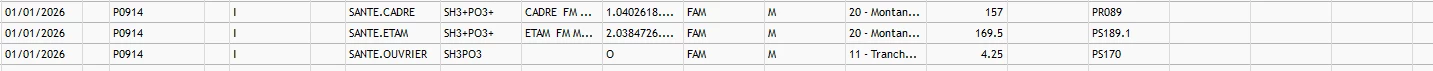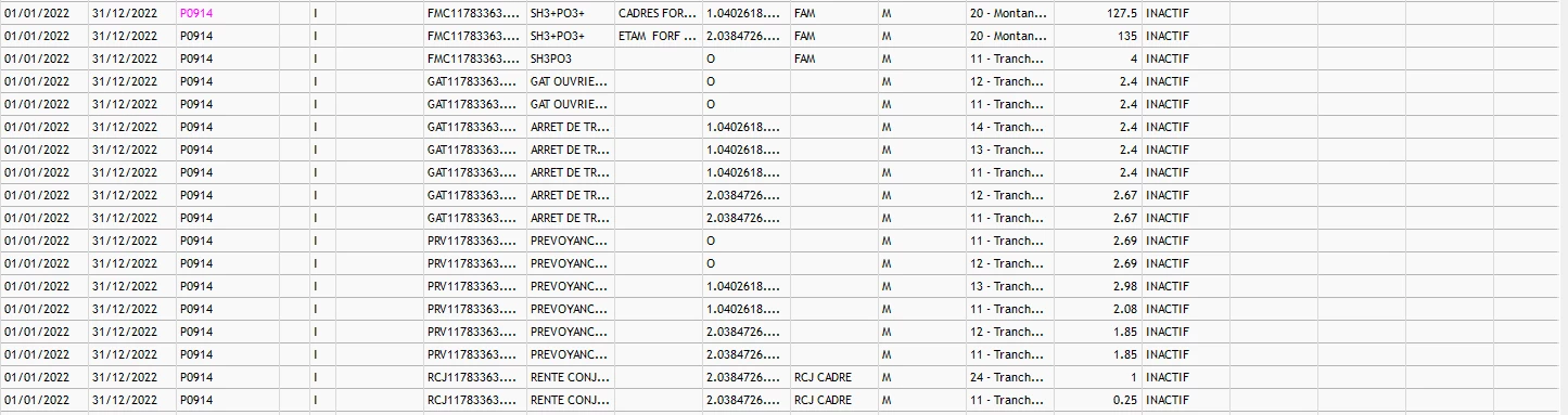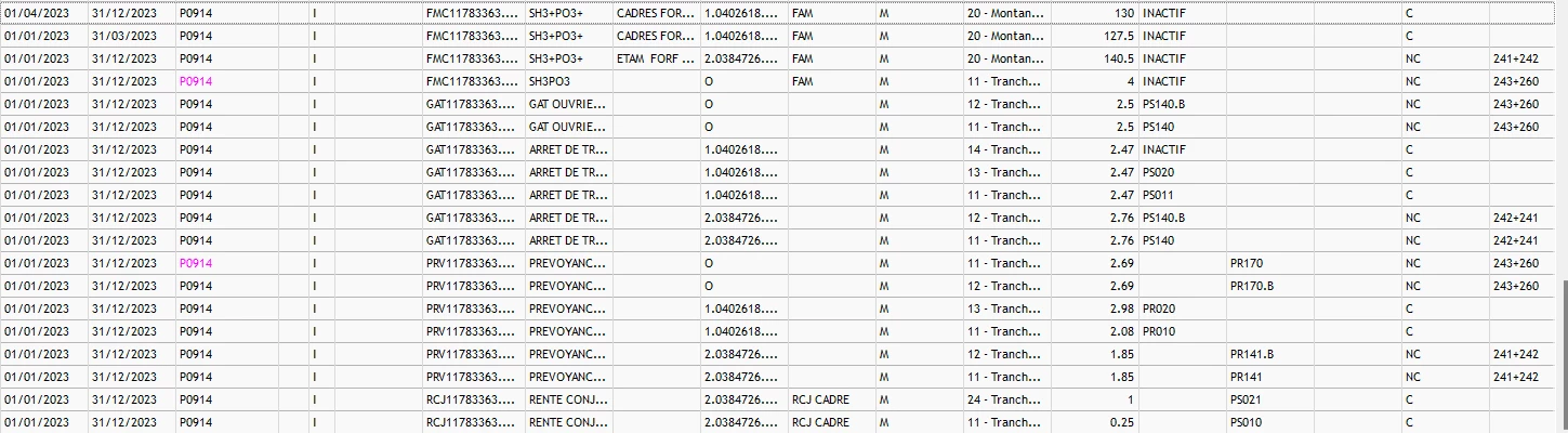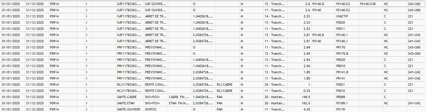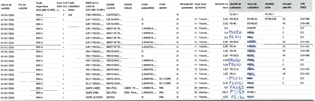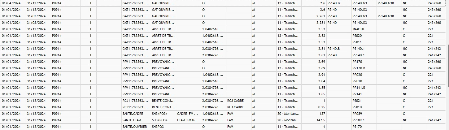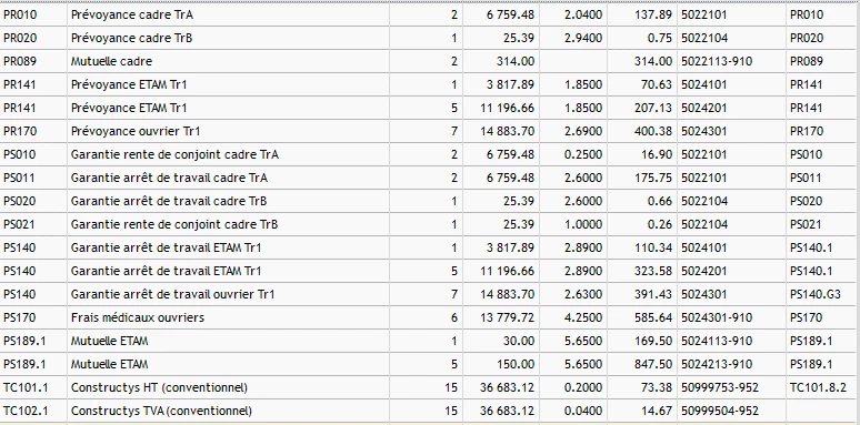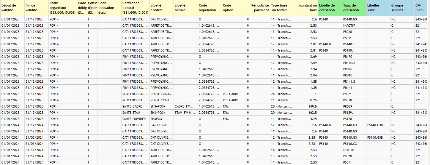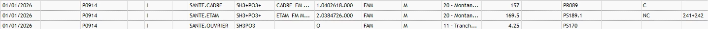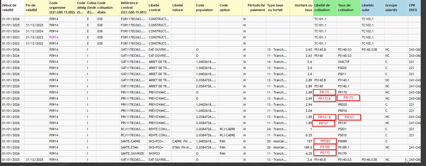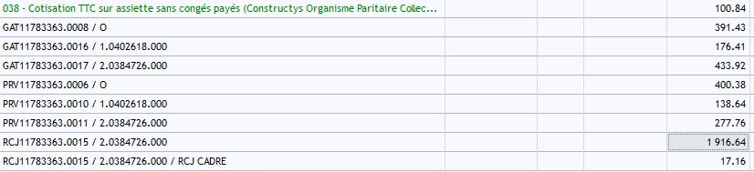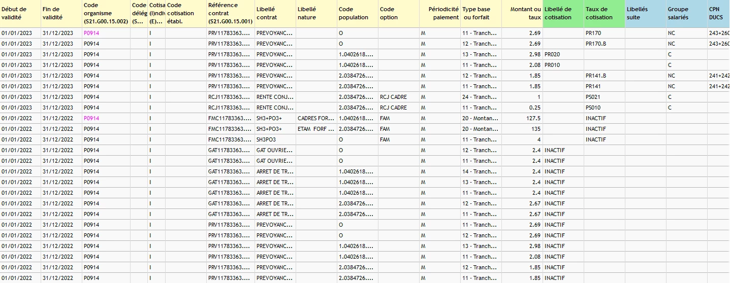 Les montants sont en plus bien affectés sur ces lignes (les cotisations cadre sont bien sur la ligne des frais de santé cadre mais pas sur la bonne référence contrat).