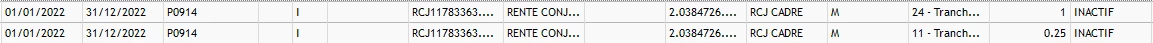 Ces références contrats correspondent aux lignes des années 2022 et 2023 qui sont pourtant en inactive dans la fiche de paramétrage… (Mon paramétrage était bon en 2025).
