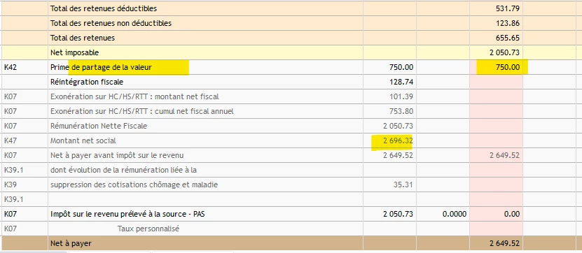 - 750€ en trop dans le montant net social