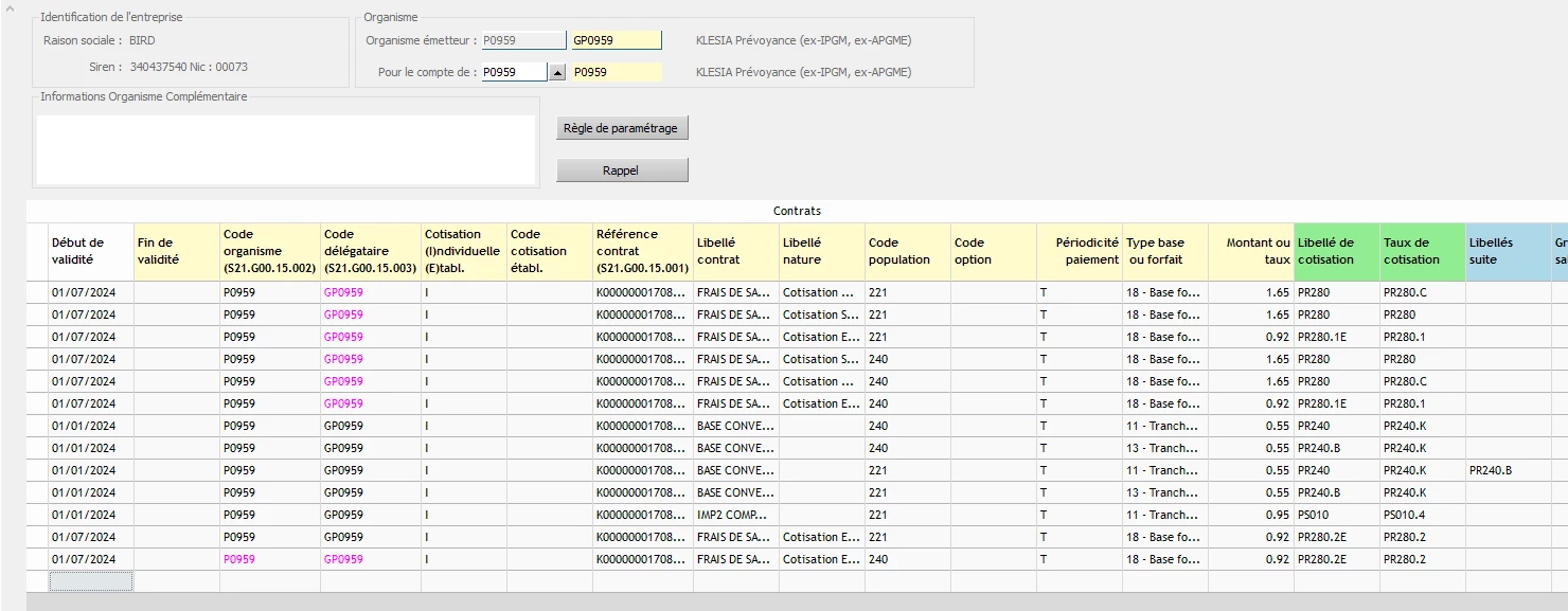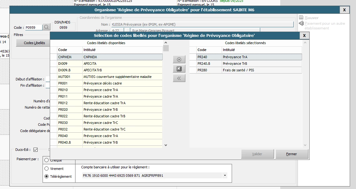 Ci-joint capture ecran fiche de parametrage KLESIA. Le parametrage de la PR280.2E est identique au parametrage