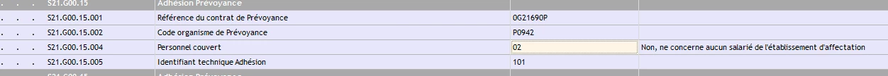 J’ai un soucis dans ma DSN, le contrat N°0G21690P ci dessous est noté en DSN comme n’ayant pas de personnel affecté (code 02). Or, ce contrat est bien paramétré dans les organismes, les salariés ont bien les cotisations sur leur bulletin et le montant de ces cotisations remonte bien en DSN.