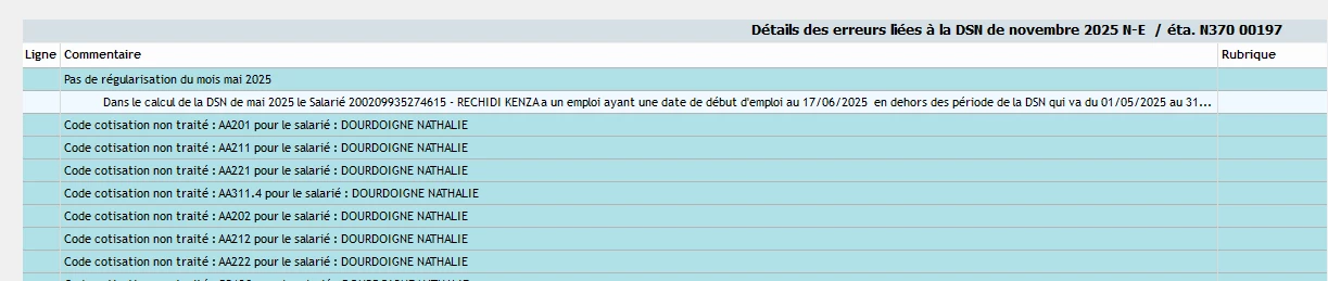 Lorsque je génère ma DSN j’ai ce genre de message d’anomalie: