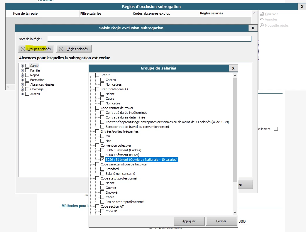 Sur un dossier de BTP l’employeur pratique la subrogation pour les ETAM et pas pour les ouvriers. Mais j’ai la case des règles d’exclusion qui est grisée et je n’ai pas de fonction de calcul “subrogation”.