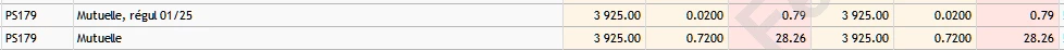 Sur un autre cas, je souhaite éviter cette erreur donc je décide de tenter avec une annulation de la base -3925 pour toute la cotisation et de replacer la totalité de la cotisation avec rattachement à la période 01/2025. Au bulletin pas de souci.