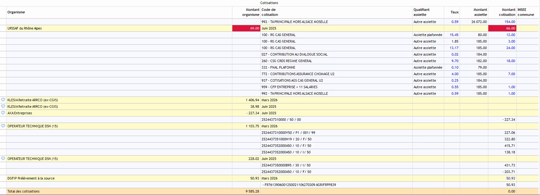 Les régul apparaissent bien pour les cotisations URSSAF et de Retraite mais j’ai un souci sur la prévoyance AXA Entreprise et Opérateur Technique. Je souhaiterais faire disparaitre ces 2 réguls. En effet, je n’ai qu’une régul de 0.68 € a prendre en compte chez AXA.