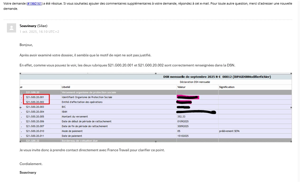 Alors que tout est bien paramétré et indiqué dans la DSN.