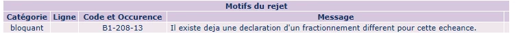 J’ai une DSN qui est en rejet, pour le motif: Il existe déjà une déclaration d'un fractionnement différent pour cette échéance