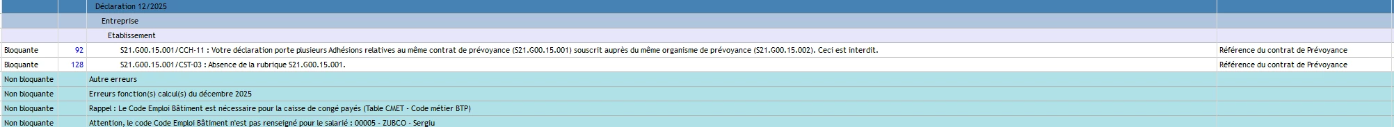 Jusqu’à présent les DSN passaient. Celle de décembre 2025 laissent apparaitre des anomalies bloquantes. Quelqu’un saurait m’aiguiller ?