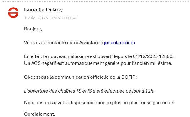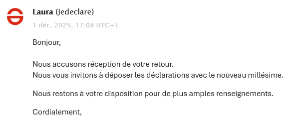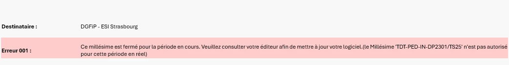 J’ai un rejet de la DSN de Taxes sur les salaires de Novembre 2025 ( sur jedeclare) au motif suivant