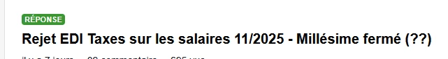 Ma taxe sur les salaires est rejetée avec ce motif : # [EEG] - [TGE] - 001 - (formulaire : NAD/DT//L7) : Message illisible - erreur syntaxique (NAD/DT//L7)(Donnée de type alphanumérique (jeu de caractères UNOL) attendue ! (segment éclaté) .