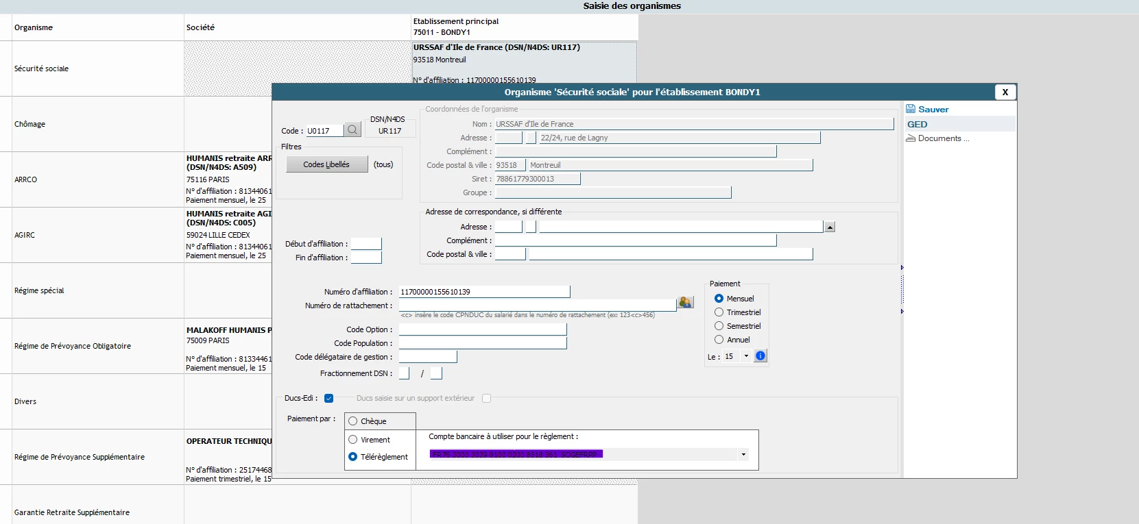 Il faut bien vérifier que le RIB soit sélectionné dans l’organisme cf. ci-dessous :
