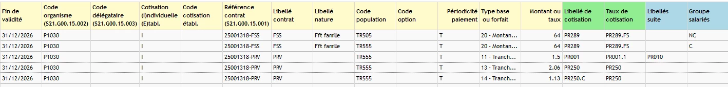 Vous pouvez supprimer l’organisme de prévoyance supplémentaire pour commencer. En effet, vous allez créer des organismes en fonction de vos rubriques. Les rubriques pour un organisme de régime prévoyance obligatoire commencent par PR et PX. Les rubriques pour un organisme de régime prévoyance supplémentaire commencent par PS. Quand on lit votre tableau des charges, vous n’avez aucune PS, donc cet organisme doit disparaître.