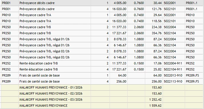 Concernant votre 2ème message je vais essayer de comprendre. ça doit venir d’une répartition qui n’a pas été faite entre la prévoyance et la rente éducation.
