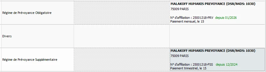 Je dois avoir un problème de paramétrage sur mon dossier car le contrat santé MALAKOFF sort avec aucun personnel couvert dans la DSN alors que les 5 salariés cotisent au contrat