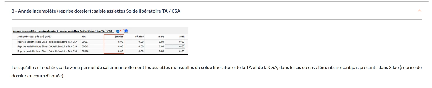 Si nous avons redescendu toutes les DSN de 2025 d’un autre logiciel, est-ce que Silae arrive a récupérer les éléments pour calculer la taxe libératoire ? si non, où devons nous renseigner les éléments ?