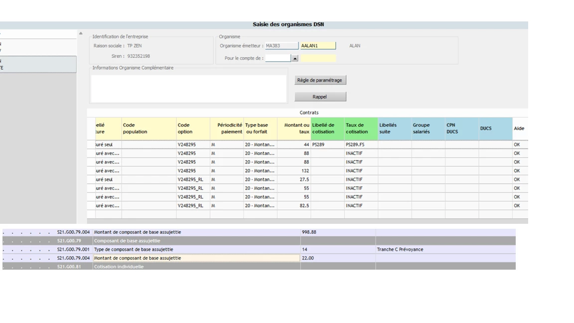 Peut-être avez-vous 2 organismes créés en Prévoyance supplémentaires sans filtres des codes. C’est peut-être une des raisons.
