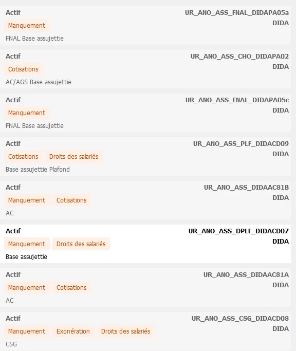 Dans le suivi DSN de mon client j’ai une anomalie de remontée pour mai 2025 avec le code technique UR_ANO_ASS_DPLF_DIDACD07