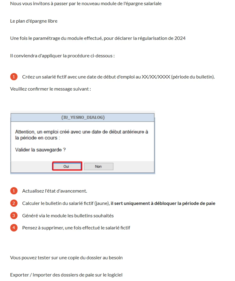 L’un d’entre vous saurait-il m’indiquer la procédure à suivre pour effectuer cette régularisation sur l’exercice 2024, la fonction “Générer les bulletins sélectionnés” n’est pas accessible.