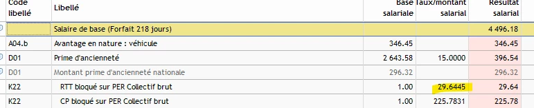 Via le module de gestion de l’épargne libre, silae calcul un taux étrange pour la partie RTT.