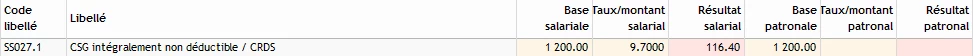 La CSG/CRDS intégralement non déductible apparaît bien, cependant elle n’a aucun impact sur le bulletin (net imposable, net à payer). Que ce soit avec un versement du salarié et un abondement, ou sans aucun versement, le net imposable et le net à payer restent identiques.