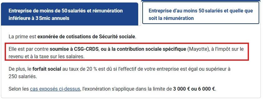 L’entreprise compte 70 salariés mais pour les salariés dont la rémunération ne dépasse pas 3 SMIC, la PPV est exonérée de CSG/CRDS et n’est pas soumise à l’IR. Ce qui ne devrait pas être le cas.
