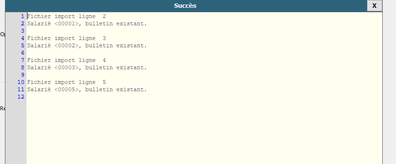 print "Salarié <" + valeurstring(1) + ">, bulletin existant."