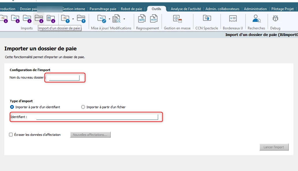 Je rentre le mot de passe pour import dossier et ensuite rien ne se passe.