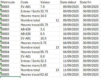Sur un nouveau dossier nous effectuons des tests sur l’import de données variables qui proviennent d’un logiciel de gestion des temps.