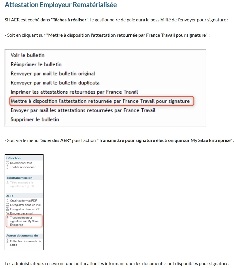 Pourriez vous me dire comment récupérer les AER sur MySilae Entreprise pour Signature électronique ?