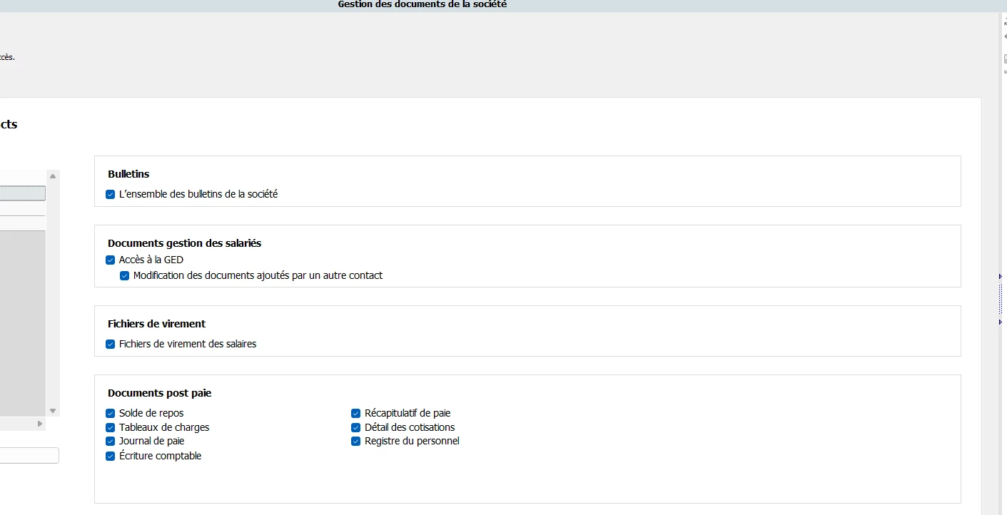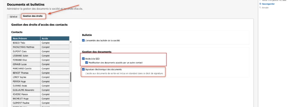 2 L'admin doit avoir le droit sur " La gestion des salariés / liste des salariés" + le droit GED pour avoir l'onglet document