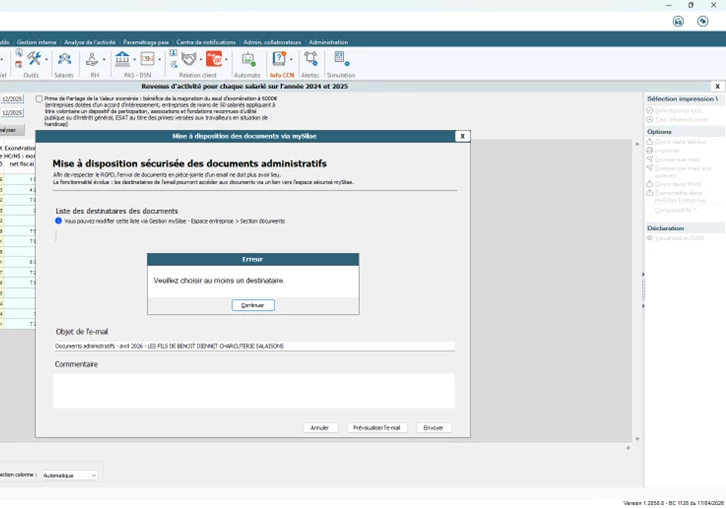 Je pensais bien avoir paramétré mon dossier pour l’envoi des attestations fiscales via MySilae (ouverture droits GED et Gestion salariés) mais voici ci-dessous le message que j’ai. Pourriez vous me dire ce que j’ai oublié.