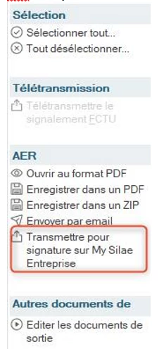 Avant elles arrivaient dans le menu signature ( à gauche), à présent je valide l’AER pour transmission sur MY SILAE et rien ne se passe.