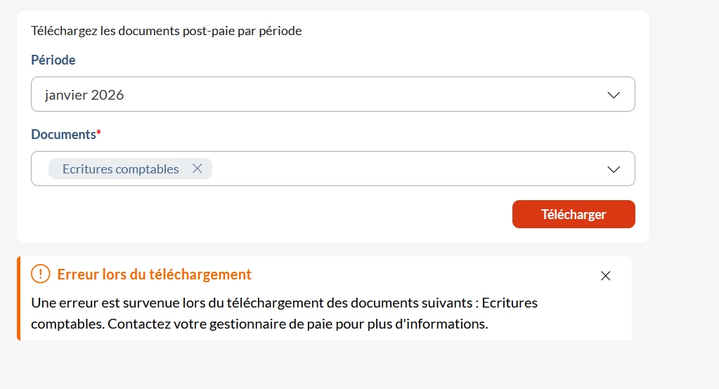 Dans My Silae, j’ai activé l’option pour que le client puisse sortir les écritures comptables mais il y a toujours une erreur de téléchargement (que ce soit moi ou lui)
