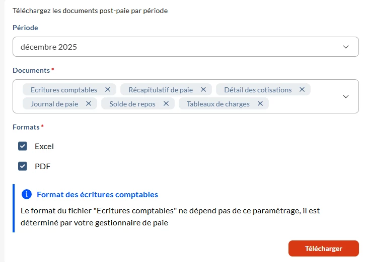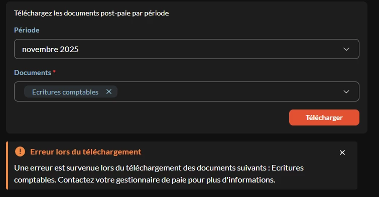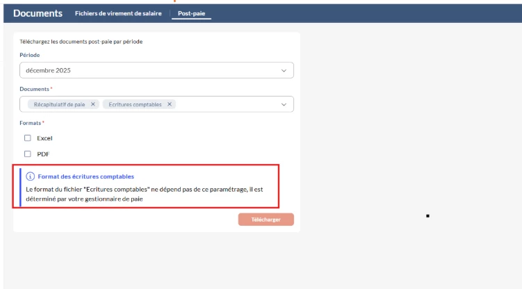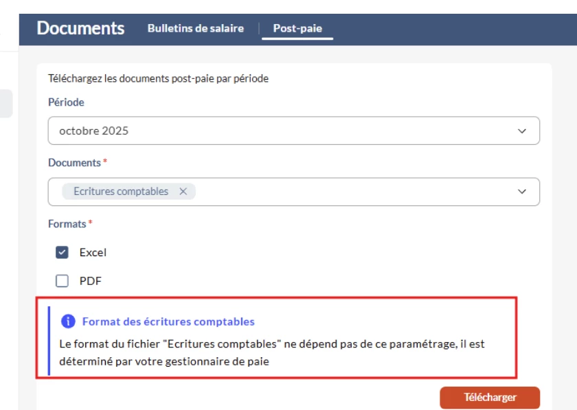 J’ai la possibilité de télécharger tous les documents en pdf et en Excel, SAUF les écritures comptables.