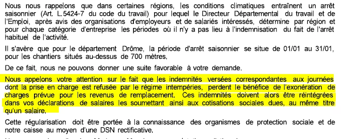 Ma société ne cotise pas au “chomage intempérie” de la CIBTP - en cas d’absence dûe à des intempéries dois-je utiliser une autre absence que celle proposé par SILAE car il y a une incidence sur les cotisations ?