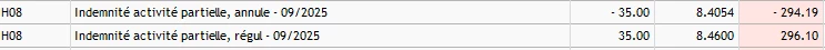 Lorsque nous saisissons l’absence « activité partielle », les bases de la mutuelle et de la prévoyance passent à 0.