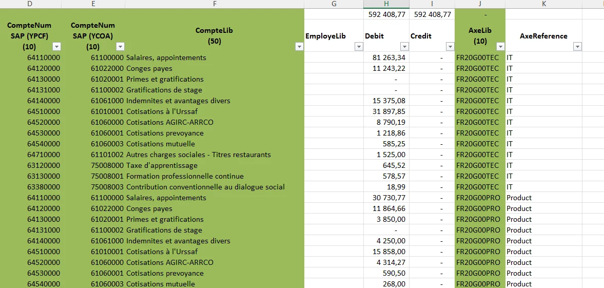 Je souhaiterai avoir 2 axes analytiques sur mon écriture comptable ainsi que les colonnes D et E: