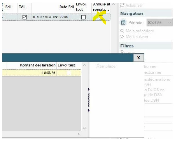 Nous avons envoyé une DSN normale (chiffre) et, après une modification de la part de l’employeur, nous avons essayé de faire une annule et remplace, mais le bouton “Remplacer” est grisé. Que devons‑nous faire ?