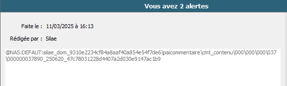 Pour l’ensemble des dossiers rattachés à un collaboration (sur 3), l’alerte du dossier :