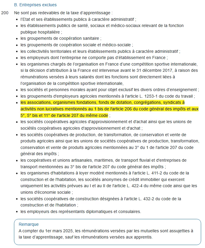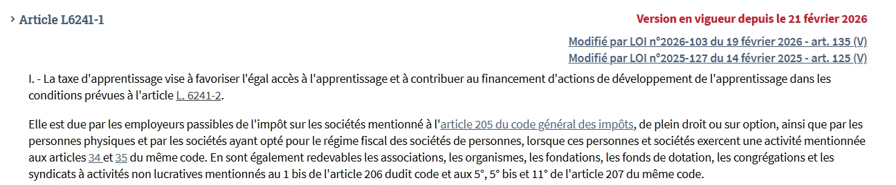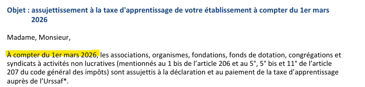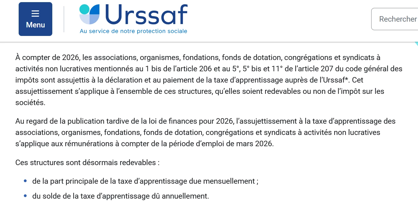Bonjour la loi de finance 2026 supprime l’exonération de la taxe d’apprentissage pour les associations à but non lucratif. Dorénavant, ces organismes seront donc redevables de la taxe d'apprentissage.