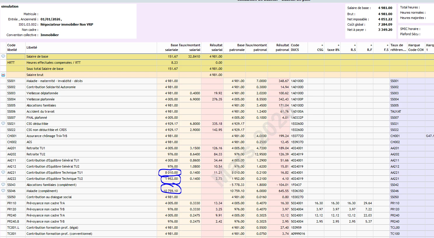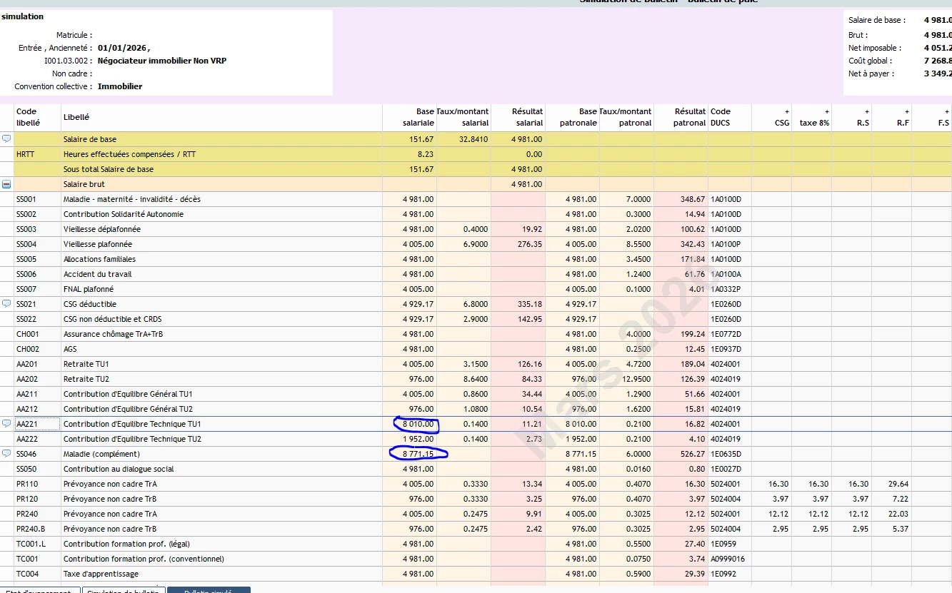 La simulation de janvier et février 2026 sont conformes et en mars 2026 j’ai des assiettes de cotisation qui explosent sur le CET et le complément maladie.