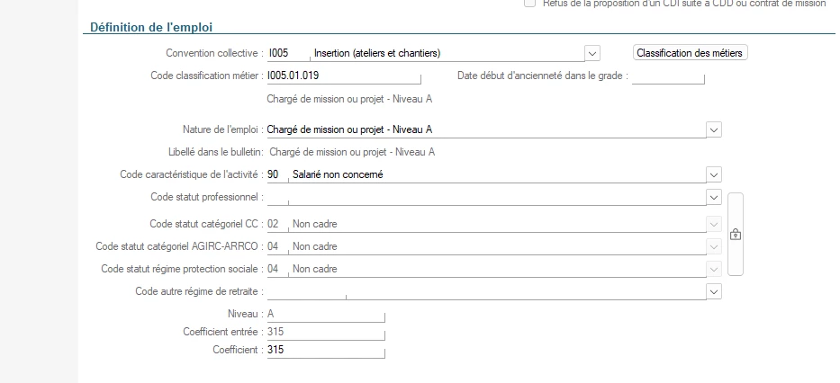 Sur la CCN de l’Insertion, il est impossible de modifier le coefficient d’entrée pour les salariés classés à partir de chargé de mission A