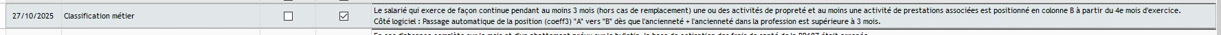 Cependant, cette maj ne fait pas la distinction entre les salariés exerçant une ou des activités de propreté OU une ou des activités de prestations associées correspondant à l’activité A.