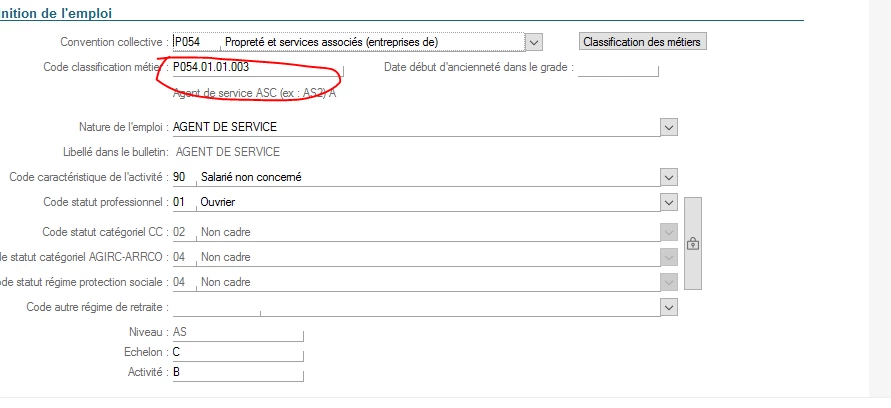 En date du 27/10/2025, il a été appliqué une mise à jour de la classification métier par le logiciel :