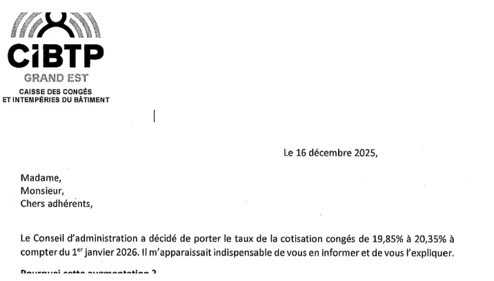 A priori, les taux CIBTP Grand Est seront mis à jour demain :