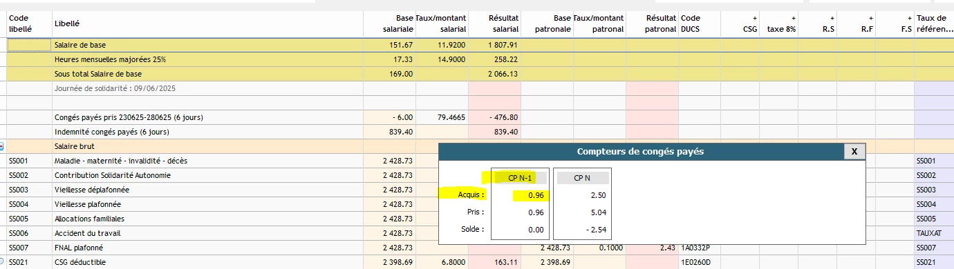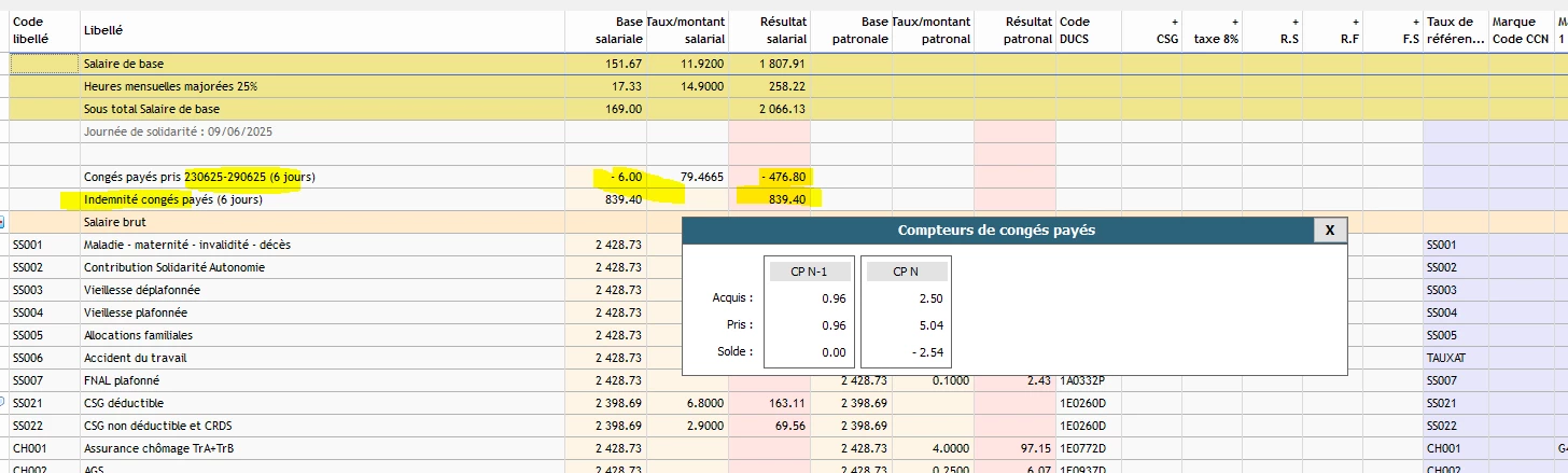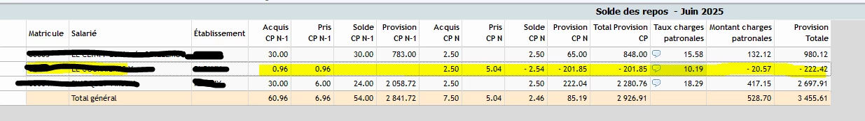 Guillaume bonjour, vous avez raison, il a travaillé 3 mois l’année dernière du 25/06/2024 au 31/08/2024. et quand il est sortie son compteur était déjà à -3 jours de CP ( voir capture ).